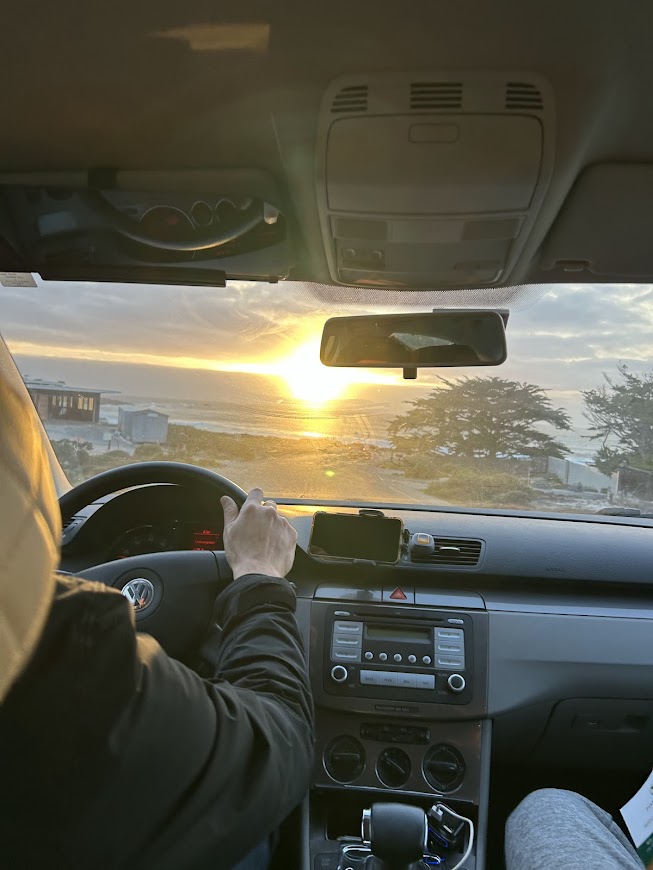 해가 지기전에 우리는 서쪽 바다로 갑니다. 베블비치를 포함하는 주립공원 단지를 차로 돌고 있어요. 17마일 드라이브길에 있고 대충 이 정도 위치였어요.